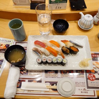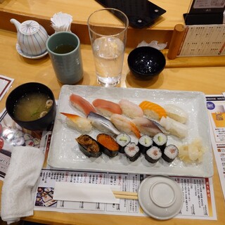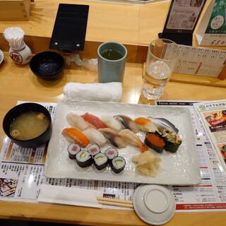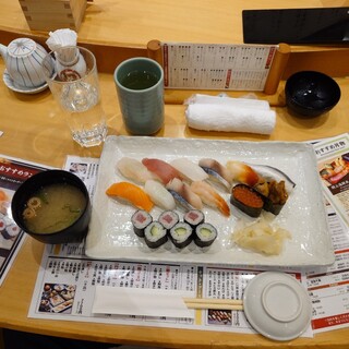 日曜日の昼前に2人で伺いました。店内ら先客、後客もまばらですんなり着席。寿司おまかせ1.5人盛を注文。今日はこの後車の運転があるのでアルコールは無しで、お茶を頂きました。着丼まで早く、にぎりたての寿司最高です。何か店内の雰囲気が変わった様な気がしました。お客さんが少ないからか、活気がない様にみえました。ランチの美味しさは変わりありません。カウンターで昼からのランチ最高でした。食後にはホットコーヒーが付くのも嬉しい限りです。満腹満足、ご馳走様でした。是非、皆様ご賞味あれ!