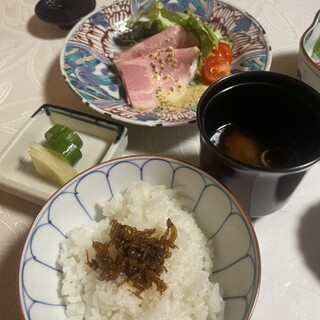 以前、扉開けてもだーれも出てこなくて、諦めて出ちゃったお店。 私の存在感がなさすぎなんですよね? 逆利用禁止などにはしないけど、とにかく今後利用しようとする時に、その時の記憶は蘇ってしまいますね。 センサーとか付けているのかな? 今回は入り口で雨の対策していたら、お店の方が出て来ました。センサーあるみたいですね。 サービスのおねい様はお一人なのかな? 時短営業仕方が無いがサービスも短縮気味ならば、ちと食べ手には困る内容でありますですね。 仕方が無いけど。 外にある内容では、うーん刺身定食かな?と思ったけれど、中に入って用意あったメニューでは兜塩焼きがありました。それにします。1200円税別・・・そう言う表記ってまだ大丈夫でしたっけ?ま、私はいいのですが・・・ 時間かかる旨確認いただきました。 はい待ちますと回答。そもそもランチタイムでそう言うのがある...