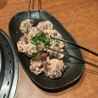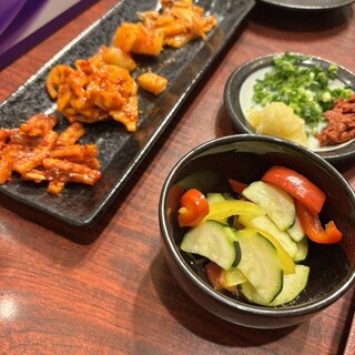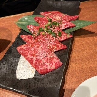 新越谷駅東口より歩いて3〜4分の所にある居酒屋風焼肉店。 店内はちよっと薄暗い感じで、肉の焼き具合がちょっと確認しずらい明るさとなっております。がまぁ雰囲気は悪くないと思います。 今回はコースメニューの『極み贅沢コース』5000円の飲み放題付き120分宴会コースにて堪能して参りました。 ◆高橋家のこだわりキムチ ◆塩もみサラダ ◆牛タン刺し ◆極上タン塩 ◆極上はらみ ◆極上カルビ ◆厚切り中落ちカルビ ◆赤身ステーキ ◆しゃぶ焼きカルビ ◆まる腸 ◆トッポギ ◆ユッケジャンラーメン というメニュー構成で、その中で自分的に特に美味しかったのは極上タン塩、極上はらみがうまかった。 タン刺も若干凍ってるかなと思いましたがビールの当てには良い感じです。しゃぶ焼きカルビも、えっ!今更豚肉かよと思ったが結構イケますね。 全体的には良いと思います。 飲み放題のお酒も...