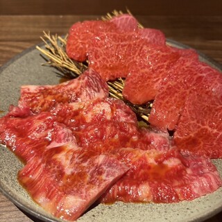 農林水産省から優良外食産業表彰大臣賞も受賞! 国産牛を中心にこだわりのアイテムを大量仕入! だから安心・安全で「おいしい焼肉」をリーズナブルに提供できるのが「ギュウシゲ」 職人品質の焼肉を手軽な価格で実現したい! そんな思いで、こだわりの素材は、北海道や茨木、そして世界から。 美味しい部位を手切り等で加工。数量確保が難しい希少部位「特選中落ちカルビ」や、 手間暇かけた「牛繁カルビ」などなど… 牛繁は、国内で!海外で!リーズナブルに提供する為の努力を怠りません。 【こだわりのタレ】 昭和63年創業以来、改良に改良を重ねた「秘伝のタレ」は3種類。 醤油ダレは自然なコクで自慢ですが、味噌ダレは、海外で絶賛された逸品。 牛タンに最適なレモンダレも用意しております。