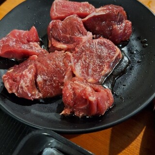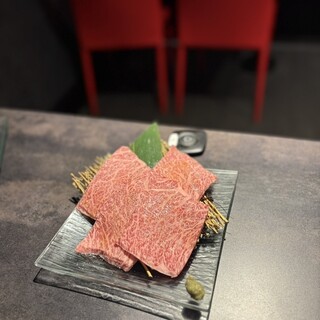 土曜夜に予約して訪問。 ・だるまロース(おろしポン酢)(¥1,100) ・だるまカルビ(¥1,650) ・ネギタン(¥1,430) ・ミスジ(¥1,100) ・ウインナー(¥638) ・自家製カクテキ(¥418) ・きゅうりの肉みそ(¥528) ・にんにくオイル焼き(¥528) ・冷麺ハーフサイズ(¥638) だるまロース、ネギタンは店員さんが1枚焼いてくれる。おすすめのレアで頂いた。 お肉は全て脂がのってて立派。美味しい。 ミスジは腕の希少部位。カルビより更にすごいアブラ! 一品ものも全部美味しい。ウインナーも、スーパーで買うものと全然違う。 気取りすぎず、高すぎず美味しいお肉が食べれるのでおすすめです。 ご馳走様でした。続きを食べログで見る