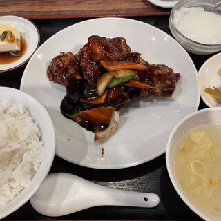 海浜幕張駅南口プレナ4Fにあります。 エントランス外には沢山のメニューが 張り出されてて、賑やかです。 ちょっと品はありませんがね(^^;) 早速入ってみました。すぐにテーブル 席へ通してもらえました。そこそこ 混んではいましたが、満席ではあり ませんでしたね。 早速、卓上メニューを拝見です。 分かり易いランチメニューがあって 3種類ありました。定食が1,100円、 この日は酢豚(黒酢酢豚も可)、 チャーハンが990円(五目か高菜)、 麺が4種類というラインナップ! まずはお冷代わりに冷たい麦茶が デリバリされましたよ(^O^) 一番お得な高菜チャーハン定食を オーダーしました。 プレナには沢山の飲食店が入ってる のですが、場所柄家賃を想像すると 仕方ないですが、どのお店...続きを食べログで見る