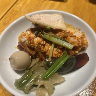 讃八小籠包 ◆お通し(ザーサイ食べ放題) ◆焼小籠包 480円/3ヶ ◆よだれ鶏 650円 ◆ニラ玉 490円 ◆三種盛合せ 2ヶ×三種類 ◆エビマヨ 650円 ◆台湾からあげ 鶏排 590円 ◆ごちゃ麻婆 790円 こんな“台湾×居酒屋”的な小籠包バル、知ってた?熱々の肉汁とグルメ酒場好きは絶対ハマる「讃八小籠包」、西船橋にあるんよ! ◆お通し(ザーサイ食べ放題) 料理は台湾のエッセンスがたっぷり。 お通しにザーサイ食べ放題があって、ビールや紹興酒を待つ間も手持ち無沙汰にならない ◆焼小籠包 480円/3ヶ 皮のもちっと具材たっぷり、噛むとじゅわっと肉汁が溢れて舌をやけどしそうなほど熱いけど、それがたまらん ◆よだれ鶏 650円 ピリッと山椒の香りで本当柔らかくて進む進む!! ◆ニラ玉 490円 ふわふわ加減がたまらんのよ! ...続きを食べログで見る