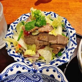 初訪問。ちゃんとしたタイ料理屋さんも初。お店の方にオススメのメニューや食べ方を丁寧に教えていただきました。 青パパイヤのサラダは辛めですが、辛いの苦手な僕でも全然食べれました。これに合うのがもち米。サラダソースに米なんてほんとに合うの?と半信半疑ながらチャレンジ。激ウマ。 鶏肉の炙り焼きは唐辛子のソースがアクセントになり、これも美味。またもやもち米が合うやつ。 そしてなんと言ってもソフトシェルクラブのチリオイル炒めがバリウマ。ちょっと衝撃的に美味いです。サンチェみたいなやつにこれとパパイヤ、鶏、もち米をくるみ、サラダソースに浸せば優勝確定。口の中で喧嘩しますがめっちゃ美味い。 酒はLEO BEERで乾杯し、タイに2つしかないと言われるワイン・モンスーンバレー白のボトルを開け、シンハービール2本でフィニッシュ。 タイ料理ってこんなに美味しいんだと思わせてくれたお...続きを食べログで見る