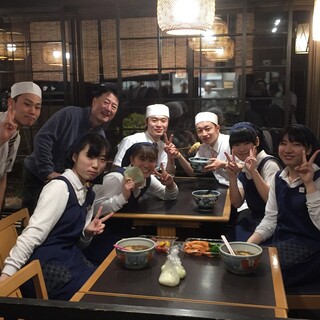 当店キッチンは「蕎麦職人」を目指す10~30代、約10名が日々切磋琢磨しています。約半数は調理師専門学校卒業生ですが、未経験スタッフも3年間頑張って調理師免許取得、さらに腕に磨きをかけています。ただいまは特定技能実習生や女性社員も勤務しており、アルバイト・パートスタッフ合わせて35名の大所帯、ダイバーシティな職場です! 完全個室型独身寮隣接、通勤0分ながらプライバシーが保たれる環境です。 不確実性の時代では「手に職をつける」事が次のステップにつながります。調理師免許を持つだけではなく、特化した食分野を極める事も個性となるのではないでしょうか? 競争あり助け合いあり、互いが夢を目指して技術を磨いています。 「食」の安全を第一に、和食を、手打ちそばを、一緒に世界に広げていきましょう!