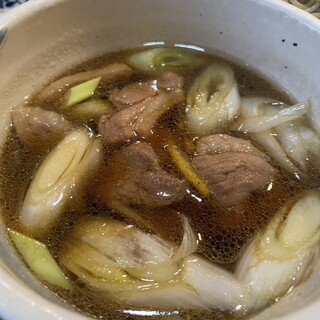 鴨せいろの元祖と聞き、目指してやってきました。 昭和10年創業の老舗ということだけど、年季の入った木製の看板や引き戸が趣を感じさせつつ、店構えは物々しくないので入りやすい。 中も大衆的な雰囲気。 お昼時とあって混み合っており、2階へ案内されました。 最後の1テーブルに着くことができてラッキー♪ 座りながら同時に、「元祖 鴨せいろ」(1300円)を注文。 卓上に置かれている蕎麦や鴨肉のこだわりを読んでいたら、すぐお膳が運ばれてきました。 なかなかの盛りです。 細めの蕎麦はキリッと冷たく締められていて、熱々の鴨汁にさっと浸けるとほどよい弾力が出て、こりゃ〜美味しいや。 鴨の旨みとほんのり脂感が後押しして、箸が進みます。 絶妙な火入れで甘さと歯応えが両立した長ネギも大好き♪ いっぱい入ってて嬉しい♪ 蕎麦湯をポットで持ってきてくれたので、最後は鴨汁に注いでごくごく。...続きを食べログで見る