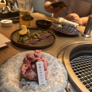 3年前に引っ越してから通っている焼肉屋さん「龍月園」。この日は店を教えてくれた近所の友人3人で予約をして週末の18時あたりにお邪魔いたしました。 久しぶりでしたが相変わらずママさんは覚えていてくれて、楽しいおしゃべりと共に焼肉会スタート!まずは、ママのおすすめでやっぱりタン塩を。ここのタンはしっかり厚みがあってジューシーでプルプルしてて美味しいのです。4枚あったので私のとこに2まいきましたw最初からテンション上がりまくりですね 続いていつものカルビ。上カルビにしなくても十分に美味しいので、ノーマルのカルビをおかわり自由で食べるようにしております。安定のうまさ。サンチュに包んで食べながら、ここら辺から白いご飯もこっそり大盛りで注文✨ あと私のおすすめはホルモンです。これまたジューシーな感じでじっくり焼いてフワフワなやつをご飯にバウンドさせてパクリ!至福の瞬間です。 そのほか、サム...続きを食べログで見る