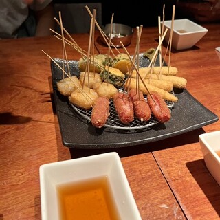 【2021年4月中旬 18:30頃から知り合い(計4名)で利用】 久しぶりに学生時代の同級生が上京するというので、新橋で集うことになりました。 コロナ禍でもありますし、やはり、個室の方が無難だろうということで、何度か、お世話になって いるこちらのお店に久ぶりに予約入れました。 コロナ前には、4名で個室は予約出来なかったかもしれませんが、この時期ということもあって、 個室利用出来ました。 久しぶりの5000円飲み放題コース、若干、コース内容が変わったようです。 メインの串揚げは変わりませんが、シュウマイが登場したのは意外でした! そして、以前の〆は、雑炊でしたが、蕎麦に変わっていました。 料理はどれも美味しいですし、飲み放題メニューのバリエーションもそこそこあって、充分、 楽しめます。 それに店内が、オトナの雰囲気でガヤガヤしていないのが、一番、良い点でしょうか...続きを食べログで見る
