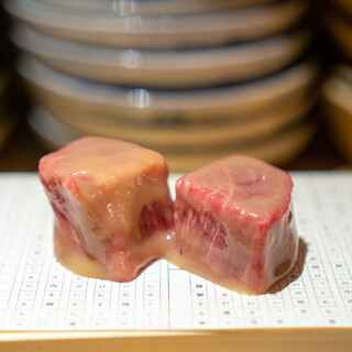 東京に住んでいる娘と久々にご飯。 『よろにく』系列なので期待大。 2週間くらい前に食べログで20:15で予約。 ビルの2階なのであまり店は広くありません。 金曜日の夜ということもあっていっぱい。 事前に赤坂みすじ渾身のコース8,800円を予約。 キムチ三種盛り、ナムル三種盛り 本日の炙り、激レアぶつ切りロースト 特製塩ダレのサラダ 葱タン、並じゃないロース、ハラミ 葱タンをプラス470円で上タンに変更 並じゃない赤身、並じゃないミスジ お吸い物 ヒレ、シルクロース ヒレをプラス1,160円でシャトーブリアンに変更 特選ロース、焼きすき ここで追加で『特上握り4貫2,980円』 阿波の手延べ素麺 本日のアイス(南高梅) で終了。 次々とタイミングよく運ばれてきます。 その都度、お店の方がお肉は焼いてくれます。 どれも、キレイなお肉で...続きを食べログで見る