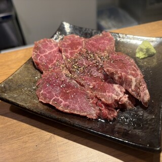 三軒茶屋の焼肉屋。 三軒茶屋駅から歩いて2〜3分の場所にあります。 首都高沿いを脇に逸れた飲屋街の一角。 ちょっとディープな雰囲気の界隈にあります。 土曜日の開店直後18時過ぎにいきました。 一番乗りで入店できましたが、みるみる満席に。 予約はした方がベターです。 本日は以下をいただきました。 こちらは神戸牛・但馬牛を提供するお店。 但馬牛を提供する店は非常に限られるのでレアです。 ✔︎キムチ(450円) ✔︎黄金レバ焼き(1280円) 酒のつまみにキムチを頼んだあと、 本日のお目当てであった黄金レバ焼きを。 角がピンと立った超厚切りの新鮮レバー。 しっかり炙ったあと、ネギを乗せて塩胡麻油で。 これだけでもここに来る価値がある。美味い✨ ✔︎韓国海苔(300円) ✔︎炙りユッケ(1700円) 但馬牛のトウガラシを使った極上ユッケ。 黄...続きを食べログで見る