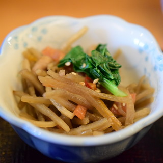 【和と洋が融合した和ビストロ料理】 「すべて手作り」をモットーに、新しい切り口で“東京スタイルのおばんざい”を提供しています。特にこだわりの手打ち蕎麦は打ちたてで提供しており、全国でも打ちたての新鮮蕎麦を提供しているのは当店だけと自負しています。ワインと締めの蕎麦はお客様から大変好評です。 おつまみも和食にこだわらず、洋のエッセンスをふんだんに取り入れた多彩なビストロメニューが自慢です。お腹を満たす“しっかりご飯”からお酒のアテまで、幅広くご用意しています。 既存メニューの人気に甘んじることなく、メニュー開発にも積極的に取り組んでいます。あなたのアイデアや意見をどんどん聞かせてくださいね。