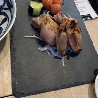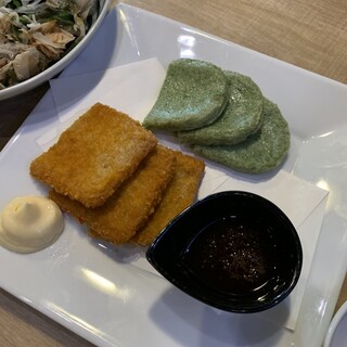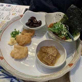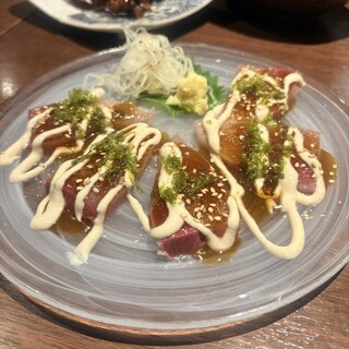 友人らとの飲みでこちらへ。 岩手をはじめとする郷土料理と種類豊富な日本酒を楽しめるお店。 新鮮で厚切りのお刺身と苦みが少なくさっぱりとした春菊のおひたしをつまみつつ。 この日一番のお気に入りは、白金豚鉄板焼き 肩ロース。 柔らかくて、濃いめの日本酒をグイグイいきたくなる。 鶏のレバー焼き 塩胡麻油は焼き加減が絶妙なまさにレバテキ。 遠野名物ジンギスカンは、柔らかい羊肉に特にタレが美味しく箸が止まらなくなる。 こうじ納豆キツネ焼きは、油揚げに納豆、ネギと昆布とかつお節がアクセントというアイデア商品。 牡蠣の酒粕チーズグラタンは大ぶりの牡蠣や鶏肉がゴロンゴロン。 酒粕の入ったグラタンソースも美味しくてすごくお気に入り。 最後は南部ひっつみ汁を。 2人前を3人分に分けて提供していただいた。 ほっこり温まる醤油ベースのスープに餅のようなものが入っ...