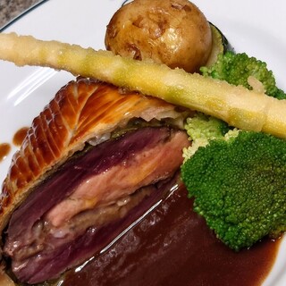 年始の昼利用。 今年の食べ始めは恒例のこちらで。 年始の特別コース頂きました。 内容は以下 岩手産平牡蠣 アミューズ 福井産寒ブリの炙りマリネ、キジのジュレ 真鱈白子のブイヤベース スペイン産シャポン ガレットデロワ となります。 牡蠣は追加です。今回は軽くポッシェした物でオマールのコンソメジュレと共に頂きます。牡蠣はやっぱり美味い。 前菜は寒ブリの表面を軽く炙り、雉の動物系コンソメジュレと合わせるという珍しい組み合わせ。ヒヨドリのムースもついてます。 魚料理は白子のブイヤベースです。こちらの定番のブイヤベースは今回白子と合わせました。尊い組み合わせです。 メインはシェフからオススメされたスペイン産のシャポンです。ノエルにはバロティーヌにしますが今回は1/4羽ほどを炭火焼きにしたもので。ソースシュプレームです。...続きを食べログで見る