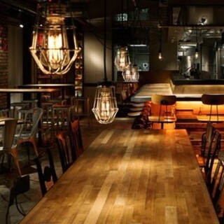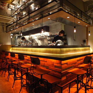 地下に位置するお洒落なダイニングが待っています。 ニューヨークの倉庫街やブルックリンのバーを彷彿とさせる雰囲気で、古い地下倉庫をリノベーションした大人の空間が広がります。 お客様のプライバシーを守りながら、店内の活気を共有できるように、ライブ感溢れるオープンキッチンのカウンターやコミュニティテーブル席、マジックミラーが仕込まれた個室席が整えられています。 また、床材や壁材にもこだわり、味わい深い雰囲気を演出しています。 様々なシーンでの利用が可能で、くつろぎのひとときから活気あるパーティーまで、幅広いニーズに応えられます。