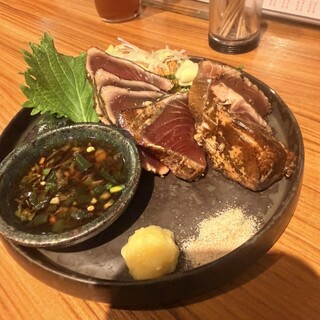 赤羽駅すぐそばにある「火一刀」さんへ。こんな駅近にこんな良店があったとは…もっと早く来ればよかったと思うほど。 お通しから豪華で、刺身盛り合わせはばい貝の煮付け付き!盛られている魚の説明も丁寧で、大衆居酒屋とは思えないクオリティ。サーモン、タコ、ばい貝をいただきましたが、どれも新鮮で美味しかったです。 「旨・洋風もつ煮込み」はトリッパ風のトマト煮込みで、スピード提供なのにしっかり美味しい一品。「鶏の唐揚げ」は偶然いただけましたが、衣は軽く中はジューシーで当たりの美味しさ。 浅漬けはセロリとみょうがで爽やか、鱧しゃぶは梅と合わせてさっぱり。季節感を感じられる料理が揃っているのも良いです。「チーズポテトアリゴ」は濃厚チーズとほくほくのじゃがいもが最高で、温かいうちに食べるのがおすすめ。舞茸天ぷらも食べやすいサイズで、旬をしっかり楽しめました。 ドリンクの「じゃんけんハイ...