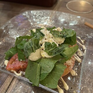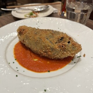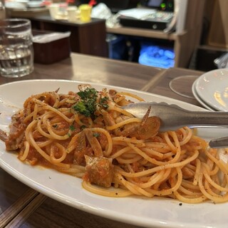 俺のイタリアン最大店舗・銀座一丁目『俺のイタリアン TOKYO』 新橋や八重洲の『俺のイタリアン』がどれもボリューミーで美味しかったので今回は、旗艦店と思われる銀座店に伺ってみました。こちらも、グランドピアノが舞台に置かれ、オープンキッチンスタイルで、大勢のシェフがお調理をされています。。 ランチメニューは、こちらの銀座店では特に設けておらず、夜と同じアラカルトメニューから選ぶことができます。ルールは、メインの他に“お通し”(300円)として、“俺のベーカリー製パン”か、“コーヒーとデザート”を付けます。それでも、素材が良いことを思えば、相変わらず、お安いと思います。 「スモークサーモンとホタテのクリームソース・ほうれん草入りのタリアテッレ」。 “お通し”は「コーヒーとドルチェ」、追加で「俺の食パン」。 【メイン】 「スモークサーモンとホタテのクリームソース(ほ...続きを食べログで見る