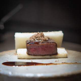 神楽坂裏路地の鉄板焼き。美味しいお肉だけじゃなく、鮑(あわび)やお野菜焼も逸品。
