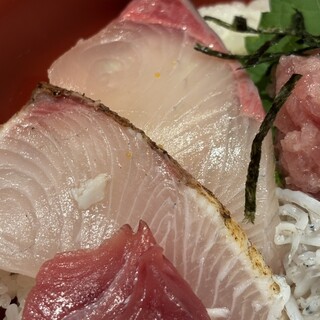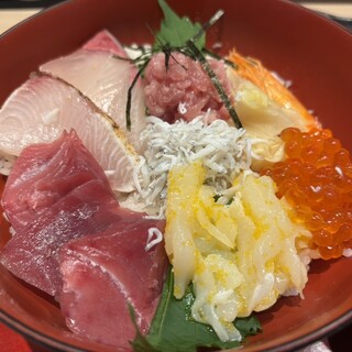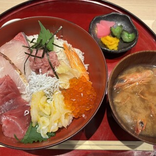 この辺りは、サラーリマンの街だけあって土曜の昼間はあまりオープンしている店がなく。。。 普段、「とびきりに高いだろうな」と勝手に思い込んでるこちらのお店は開いてました。 メニューを見ると、そこまでめちゃくちゃ高いわけではないので、入店。 カウンターのままの店内。 海鮮丼(¥1,300)を注文。 店主さんかな?この方がかなり愛想が良くてキビキビしていて、ポイントは高い! 肝心な海鮮丼は、、、絶品です!! 丁寧な盛り付けに、味噌汁が更に海鮮丼の味をひきたたせています! 当たりの店です! 御馳走様でした。続きを食べログで見る
