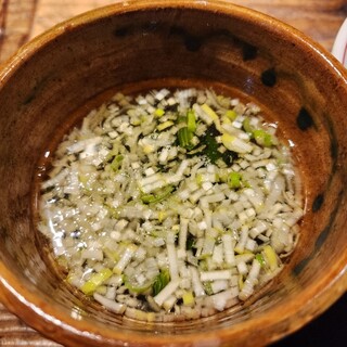 2025年5月訪問 恵比寿 らぁめん冠尾 恵比寿西店 濃厚辛和え麺(麺1.5玉) 1100円 + 炙り鶏皮220円 合計1320円 恵比寿駅西口の喫煙所を渡った方、ラーメン店や居酒屋などたくさんある飲食エリア。 冠尾とかいてカムロと読むようだ。だいぶ前に一度メインの鶏白湯ラーメンをいただいた。 とても美味しかったと記憶している。今回はそのお店の油そば(まぜそば)だ。 炙り鶏皮が旨い。トッピング追加大成功。ちゃんと量もある。 混ぜて辛味の有るタレと肉味噌かな、よく混ぜた麺にして啜る。細麺のまぜそばはあんまり経験ないが、旨いねぇ 1.5玉というのもありがたいがちょっとだけタレが少ないかな?あと10cc欲しげ。 卓上のラー油を入れます。これでダマになるのを防ぐ。胡椒と山椒を足すが 香りが良い、食欲をそそる。山椒のミルが目詰まりしてるのかあんまり出ないのが残念。 ...続きを食べログで見る