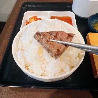 新馬場駅からすぐ近く、商店街の焼肉屋さんで地元の人から愛されています。 店内は清潔感もあり、煙たくなりづらいロースターで利用しやすいです。 ランチタイムは近くで働くサラリーマンで賑わっています。 ランチタイムにしか出ない料理もあるので夜とは違った楽しみ方ができるのも嬉しい。 三種盛り合わせ定食 上タン塩 単品 定食はごはん、スープ、サラダ、キムチがついてきます。 今日は思いっきり食べたかったので盛り合わせ定食とタン塩を追加で頼みました。 定食のお肉はどれも厚切りで食べごたえがあり、一切れの満足感がしっかりあります。 ディナータイムでも提供されている上タン塩は大判で柔らかく脂がのっていてお酒ともお米とも相性が良いです。 お店の規模は広くないですがお昼は回転率がいいのでタイミングが合えばスムーズに入れますしサッと焼肉ランチが食べられるのはありがたいなと思...続きを食べログで見る