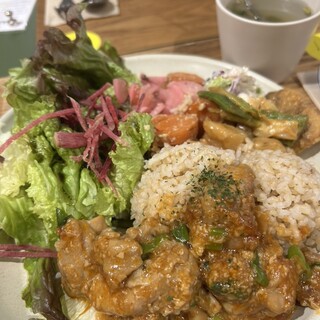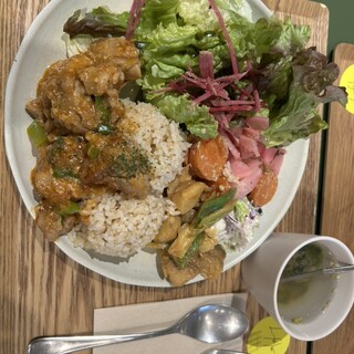 ゴボウときのこの豆乳腸活スープセット•日替わりセット(ガパオ)