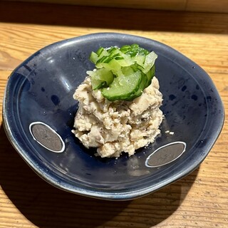 平日のディナータイムに訪問。 場所は池袋東口から10分ほど歩く、雑司ヶ谷方面にあります。 早い時間からの入店なのでまだ外は明るい。 和風の古民家のような建てがまえで、縁側のように大きめの窓はオープン。開放感があり、いい風が入ってきます! 内装も渋く、黒と木がうまく調和した落ち着く空間です。座席はテーブル席とカウンター7席、奥に座敷が2テーブルあり。 独り飲みや少人数でしっぽり伺いたいお店です。 本日はカウンターへ。 <Food> ・お通し 380円 鮪、鯵、いさき? 色とりどりの3種。 ラディッシュの味噌添え、ウリ、玉こんにゃく ・お刺身の3種盛り 鮪、鯵、いさき? ・いぶりがっことクリームチーズ 580円 クリームチーズがぐるぐる渦巻き。 ・のどぐろ 塩焼き と...続きを食べログで見る