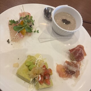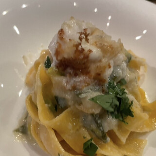 エノテカと名乗っているとおり、「ワインバー」「ワインを展示・試飲・販売する場所」。食事だけを楽しむのではなくコンセプトを理解してワインを楽しむ場所として理解する方におすすめします。 ということで大舟に乗ったつもりでボトルではなく、ペアリングコースに。オーナーソムリエはフランスに拘らず、おっ!と思うワインを選んでくれます。 最初はムニエ主体のシャンパーニュのドメーヌHubert Noiretのブランドノワールから。 白は個人的に苦手な自然派。綺麗な造りの生産者を見つけて提供してくれ好感度が上がります。赤は重たさがあるニューワールドのCSも登場します。 接客や解説も心地よく、ワイナリーの映像を強制的に見せられ全く好みと異なるワインをペアリングしてくる恵比寿「アッカ」とは大違いです。 料理は簡潔に言うと、シェフが交代し若い方なのでワインの印象しかありませんでした。 カルパ...続きを食べログで見る