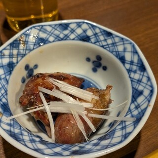 「鳥さわ」の学芸大学店が「やきとり右羽。(うう)」としてリブランドオープン。「鳥さわ学芸大学」で活躍した砂田健二シェフが店を買い取る形で独立開業したそうで、再出発後も百名店に選出されるなど高い評価が続いています。場所は学芸大学駅の東口から歩いてすぐです。 店内はカウンターに7-8席とテーブル席が2卓。黒を基調とした内装でスタイリッシュでモダンな印象。ドリンクは高くなく、ビールの中瓶が800円に日本酒は1合900円からと良心的な値付け。店主はソムリエでもあるそうで、ワインの品揃えも見逃せません。 お通しにぬか漬け。恐らく自家製のものであり、キュウリとダイコンが丁寧に漬け込まれています。発酵由来の程よい酸味と深い旨味、そして野菜本来のシャキシャキとした食感が心地よい。 低温調理のレバ刺し。ネットリとした舌触りとレバー特有の濃厚な甘みとコクが凝縮されており日本酒が進む進む。濃い...