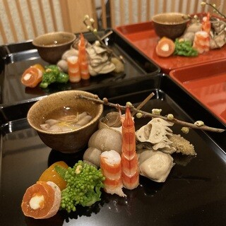 宝町駅からすぐのこちらのお店。私は有楽町駅から銀座の街中を15分ほど歩いて到着。 看板がないので一瞬わからないのですが、地図通りいくとたどり着けます! ーいただいたものー ○先附 ○季節の八寸(5~6品) ○お椀 〇旬の逸品① ○煮物 ○旬の逸品② ○焼物 ○ご飯物 ○甘味 ○飲み物ゆずジュース 席数は多くなく、落ち着いた店内なので心穏やかに静かに食事を楽しめます。お店の雰囲気は日本料理やさんらしい「和」の落ち着きのある創りで、会食につかわれたりするのが多そうな感じです。 季節ものを沢山のせた八寸料理は、秋らしい飾り付けで美しいです♡ 苦手食材を記入するのを忘れ、苦手な牡蠣と白子が出てきてしまいましたが、こちらの牡蠣と白子は臭みがなく味付けも美味しかったので食べられました!好物のカニが綺麗に盛り付けられていてこちらはなんだか食べるのもったいない気持ちに...続きを食べログで見る