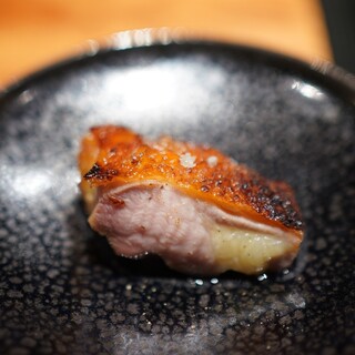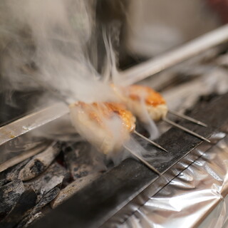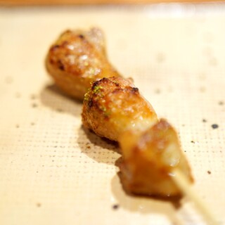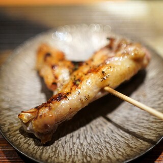 〜・こだわりの素材でつくるコース料理・〜 当店では、希少な「松風地鶏」を丸ごと仕入れ、その場でさばいて使用しています。 お客様に提供する際の焼き加減を考慮しながら丁寧にカットし、串に刺す作業を行っています。 また、季節やお客様のご希望に応じて、鴨や鰻など、伝統的な焼鳥の枠にとらわれない食材も取り入れています。 焼鳥を中心に据えつつ、前菜や箸休めはスタッフ全員で毎月アイデアを出し合い、厳選したものを試作して内容を決定。 妥協せず何度も試行錯誤を重ね、お客様にご満足いただけるコースを提供しています。