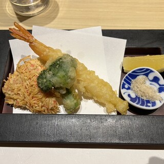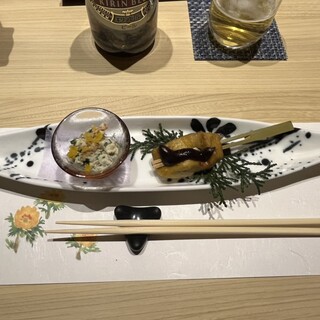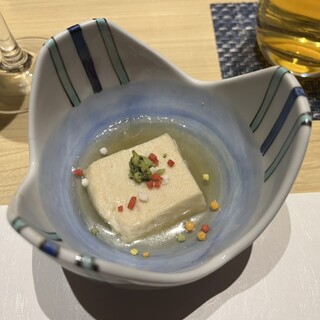 銀座で買い物した後でご飯。 お昼は洋食だったので、和食がいいなーと思い検索。 近くで雰囲気良さそうなこちらのお店へ。 結果、大正解!! 入口は地下。 入るとステンレスとガラスの棚にワインのかっこよい陳列!職業柄的に見てしまう。 店員さんの親切な案内も◎ 個室に案内されました! お通し、白和 フワッと香る白胡麻。 小松菜すき!ケーパーもアクセントになり美味しいので、他のも期待できました。 生うにぷりん@780 帆立とアスパラの焼きびたし@1280 生うにぷりんは少ないので、1人ひとつがおすすめ、 帆立とアスパラはシェア出来るサイズなので、1つで良いと思いますよ!って親切なアナウンス。 こういうの大事よね さて、生うにぷりん。 見て!とってもプルっとしてます。 そして、かなり濃厚なやつ。 大人のぷりん。 帆立とアスパラの焼きびたし...続きを食べログで見る