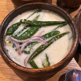 市ヶ谷にある、世界一辛いブータン料理が頂けるレストラン【LASOLA Bhutan Restaurant】 誕生日、こちらに予約してもらい初訪問。 ブータン料理って全然知らなかったんですが、主食で唐辛子を食べる世界一辛い料理みたいです。 大体の種類に唐辛子や山椒が入っています。 辛さは激辛っていうよりは、美味しく食べられる辛さ。 チーズ料理のエマダツィ。 チーズベースで、具材は唐辛子のみ。 何種類かありましたが、これが1番辛いとのこと。 唐辛子料理、色々と食べましたがこれが1番辛かった! 濃厚なチーズソースに、ガツンとくる唐辛子の辛さたまりません。 ベースは同じで具材がキノコのシャモダツィ。 こちらは、エマダツィに比べるとだいぶ、辛さはマイルド。 干し豚バラ肉×唐辛子×大根の煮炒め、シーカムパ。 干し豚バラ肉が旨みが凝縮されていて、噛めば噛むほど味...続きを食べログで見る