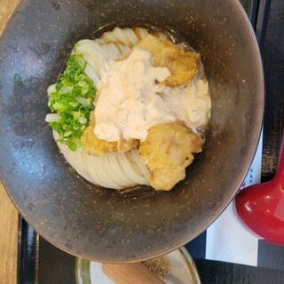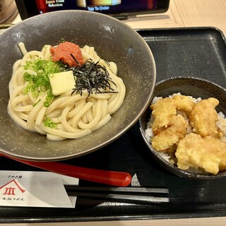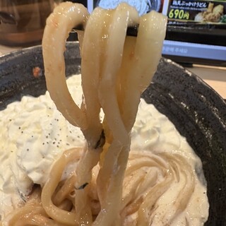 飲んだ後の〆に利用。 朝になっても開いている、24時間営業に感謝。 注文は、釜明太醤油バター。 ゴマをすり、明太子とバターを絡めて、一気に啜る。 美味い。 コシがあるうどんと、絶妙な濃さのタレに箸が止まらず、一心不乱に完食。 話題性だけでなく、ちゃんと作りが本気なの素晴らしいです。 立地や営業時間もありがたいけど、シンプルに美味い1杯でした。 ごちそうさまです。 続きを食べログで見る