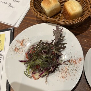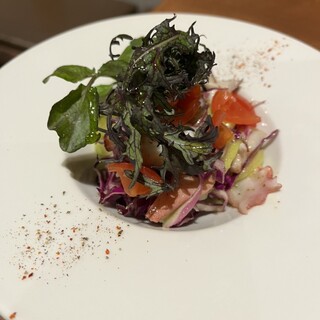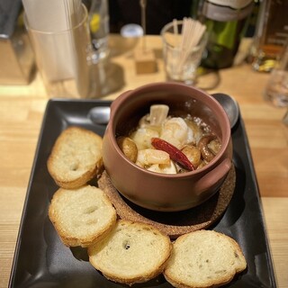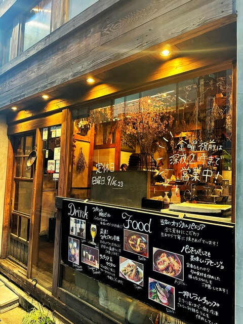 前から気になってたお店。カウンターしか見えないから、BARかと思ってたらフードもかなりあるようで、入ってみる。 入り口からわからないくらい、奥に縦長のオープンキッチン。チーズの焦げた良い香りがたまらない。奥の階段下カウンターへ。ちょっと暑いので、ミニ扇風機をどうぞって設置してくれました。価格は全て税込で ⚫︎お通しのサラダ 500円 別添えの自分でかけるもったりしたドレッシングが、 ニンニク効いてて元気が出る好みの味! ⚫︎生ビール(カールスバーグ) 700円 ⚫︎前菜3種盛り 900円 バケットをブリュレにつけて食べてくださいね!と。 鳥レバーブリュレ、カポナータ、いかのマリネをセレクト。 桃とクリームチーズの生ハム巻きにしたけど欠品だそうで、イカのマリネに。レモンの皮のアクセントが効いてる感じで爽やか! カポナータ、野菜大きめで崩れてない美しさ。鳥レ...続きを食べログで見る