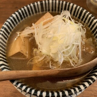 明るい時間から飲める店を探しに上野に来て たまたま通りがかったお店で 日曜の16時前に伺いました。 席は店内席と店内前の外席(屋根あり)があって 今回は外席の方に案内いただきました。 人は割と入っている印象で 中だとカウンター席になる感じでした。 Order menu ・牛煮込み 539yen ・ぴり辛もやし 418yen ・のどかしら 187yen ・ちれ(ひ臓) 187yen ・しろ(大腸) 165yen ・あぶら(内臓周辺) 165yen ・シロコロ(油付大腸) 165yen ・はらみ(横隔膜) 165yen ・メガハイボール 726yen ⬜︎牛煮込み お店の推しメニューっぽい感じだったので 注文してみました。 具材は豆腐なども入ってる感じで 上からネギがたっぷりのっていました。 お肉はとろっとろに煮込まれていて 飲めるくらいの...続きを食べログで見る