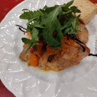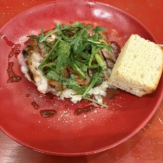 大門で暑気払いの飲み会。幹事さんが選んでくれたお店が「TOM TOKYO」でした。地下への階段を降りていくと、こじんまりしたお店があります。我々は8人で、あと二組のお客さんでほぼ満席です。 頼んでおいた料理は、ワイン飲み放題で10,000円ぽっきりでお願いしました。 ♦クロスティーニ シンプルだけど肉肉しくて美味しい。サクサクパン。 ♦前菜盛り合わせ 12時からカンパチカルパッチョ、筍、ゴーヤ、鹿肉と葡萄、サラミ、豚のテリーヌ、ダチョウのレバー、ハツ、もも肉、中央はモッツァレラ。ダチョウの内臓は初めて食べました。新鮮でこりこり美味しかった。 ♦鹿肉のグリル たっぷりのオイルでコンフィしてある感じですね。さっぱりとした脂身のお肉が美味しい。 ♦ツキノワグマの煮込み 濃厚な熊肉の旨味が楽しめる、シチュータイプの煮込み。美味しいです。思ったよりクセはない。でもや...続きを食べログで見る