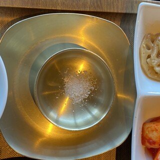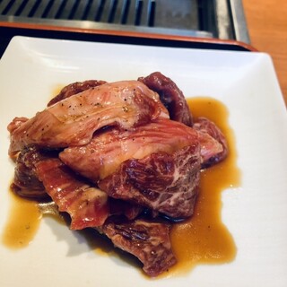 飯田橋近くの商業施設「飯田橋サクラテラス」3階にある焼肉店。落ち着いた雰囲気の中で上質な焼肉と韓国料理を楽しめる、使い勝手の良いお店です。店内はシックで清潔感があり、ゆったりしたテーブル配置で会食にも向いています。 特上タン しっかり厚みのあるカットながら、歯切れの良い柔らかさ。焼くと表面は香ばしく、中はジューシー。シンプルに塩でいただくと、肉の旨味がダイレクトに感じられます。 特上カルビ ほどよいサシが入った一枚肉で、焼き上げると脂がじゅわっと溶け出し、口に入れるととろけるような食感。肉の甘みがしっかり感じられ、ご飯とも好相性。 オイキムチ 副菜も丁寧な仕上がり。キムチは辛さ控えめで食べやすい。焼肉の合間の箸休めに最適です。 ドリンクは韓国焼酎、マッコリのほか、ビールやハイボール、ワインも揃い、料理に合わせて選べます。 料理のクオリティ、店内の...続きを食べログで見る