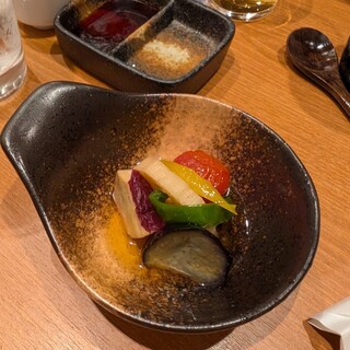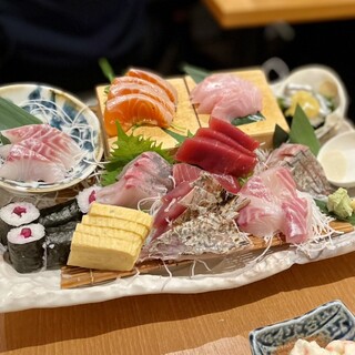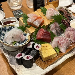 仕事の関係者と個室で宴会。「厳選食材・高級食材の豊漁コース」をお願いしました。 野菜ソムリエ厳選の野菜も旨いし、もちろん魚も旨い!ボリュームもかなりあって超満腹でした。 この日のメニューは下記のとおり。(写真は一部しかありません) (2時間半の飲み放題付き) ・季節の先付と冷製茶碗蒸し ・本まぐろ入り 本日の刺身九種盛り合せ ・船橋市「石井農園より」イタリア野菜のソムリエサラダ ・静岡産 金目鯛のしゃぶしゃぶ ~お野菜と一緒に~ ・国産黒毛和牛のステーキ ~焼き野菜添え~ ・船橋地場野菜のあっさり煮 ~冷製仕立て~ ・野菜ソムリエ厳選 夏野菜と海老の天ぷら ・新潟「こそば亭」監修 妙高こそばのいくらおそし蕎麦 ・デザート また、こちらのお店は、店内全席「電子タバコのみ喫煙可」なので心配でしたが、(少なくとも個室の中は)タバコが臭うようなことは全くなく、...