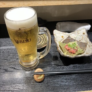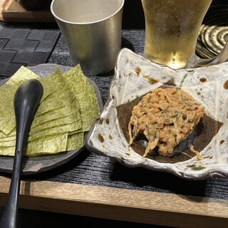 明治座の観劇後に1人で訪問。グループ客が多く店内賑っていました。日本酒飲み放題はグラスで提供。一升瓶を写真撮影用に置いていてくれます。閉店間際だったので50分くらいで3合くらい飲んだかな? 店員さんが少なく、ドリンク飲み放題をつけてるテーブルが多いためか、お客さんから次々とオーダー入りとっても忙しそうでした。 料理は、マグロの脳天刺を含めた刺身三点盛りも、鮟鱇のとも和えはも、とってもお酒泥棒です! 南部せんべいピザは、味付けに迷っていたところ、「2種類ご提供でよろしいですか!?」と食い気味な店員さんのご提案に、1人で来店しているので気を利かせて貰えて2種類を1個ずつハーフサイズで提供してくれるのかと勘違いしてお願いしてしまいました。きちんと2種類×2個ずつ来たし、その分も請求されたので、そこは確認しとけばよかったなぁって思いました笑。塩辛か味噌が乗っているだけあって、とても塩っぱく、...