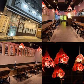 「金魚ねぷた」が踊る、青森の宵をイメージした空間で、地酒と郷土料理を愉しむ 常時30種以上の青森地酒と、地ワイン,地ビールをご用意し、 本格的郷土料理や、 ワインに合わせた洋仕立ての創作郷土料理などを楽しめる、アットホームな空間が自慢です。