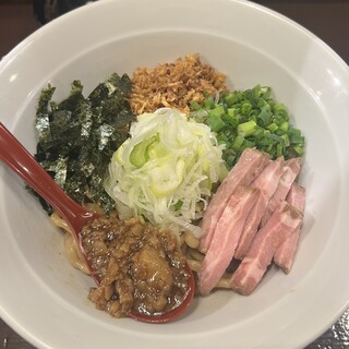 当店は錦糸町駅から徒歩5分、路地裏にある小さなお店です。 提供しているのは「まぜそば」麺にタレと油を絡めて具と混ぜて食べるラーメンです。 使用している麺は老舗の浅草開花楼さんのうどんと見まごう超極太麺 毎日その日使う分だけの麺を届けてもらいます。 他では味わえないようなヤミツキになるタレを使ったみたらしまぜそばが看板メニュー お陰様で毎日多数のお客様に御来店いただいております。 他にもカレーや塩レモンなど毎日でも来ていただけるよう色々なメニューをご用意しています。