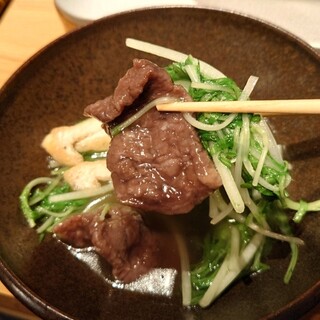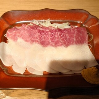 東京メトロ南北線・都営三田線「白金高輪駅」4番出口から徒歩2分 白金高輪駅近くの路地にあるお店。 名物の鯨はりはり鍋は絶品です! 鯨を余すとロコなく、色々な料理でいただく鯨尽くしのコース。 コンクリート打ちっぱなしのおしゃれな外観。 まずは、さらし鯨。酢味噌の酸味とさらし鯨、きゅうりが合う。 今日の鯨は、いわし鯨。 尾の身のお刺身は、馬刺しのような味わいで脂が美味しい。 続いて、鯨ベーコン。練りからしを付けて、ネギを巻いて醤油でいただきます。 こちらもお刺身とは違い、からしと脂がベストマッチ。 名物の竜田揚げは、柔らかく揚がっていて美味。 じんわりと旨みが口の中に広がります。 名物の鯨はりはり鍋。 シャキシャキの水菜の食感から”はりはり鍋”という名がついたとか。 鯨、たっぷりの油揚げと野菜に火が通ると、そこに大量の水菜をドバッと入れて完成...