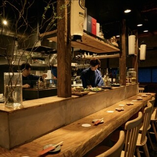 店内の中心にある囲炉裏を中心にした創作和食を提供しております。 厳選した日本酒と和食のマリアージュをお楽しみ頂けるよう日々勉強、技術向上をしております。 ライブ感あるコの字のオープンキッチンで一緒に最高のパフォーマンスを魅せて営業を楽しめる方大募集です!!