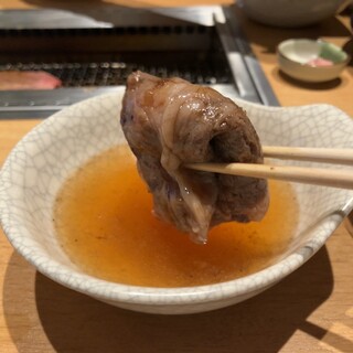 ★3.50 東京メトロ丸の内線淡路町駅、都営地下鉄新宿線小川町駅から徒歩1分の場所にある焼肉屋さん。 17時59分に入店。 席は3割程度埋まっているが、この日は1テーブル以外全て予約で埋まっているとのこと。 代表的なメニューは以下の通り。 ・塩上カルビ ・幸せの絨毯 ・金モモ(上ロース) ・厚切り上タン塩 ・塊肉シンシン ・極上レバー ・芝浦ミックスホルモン ・上ミノスンドゥブチゲ ・石焼ビビンバ ・冷麺 なお、アルコール類も豊富に用意されている。 注文したのは以下の通り。 1.生・上タン塩(2,090円/1人前) 写真は2人前であり、1人前はざっくり6枚ということになる。まず、見た目からして美しい。タン特有の繊細なサシが入り、表面はしっとりとした艶がある。厚みはしっかりありながらも、均一にカットされており、焼きやすさへの配慮が感じられる...続きを食べログで見る