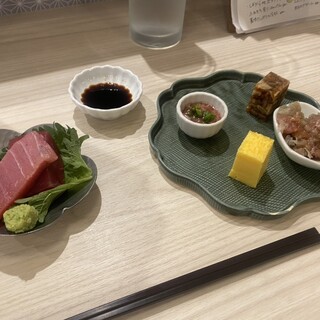 以前の職場のメンバーと新年会で伺いました! 新しくできたお店とのことでしたが、 きれいでおしゃれでいい感じですね。 お店に入ると右にカウンターが並び、1人でも軽く、、、みたいのも全然有りっすね♪ 今回は6人での飲みの場だったので、一番奥のテーブル席へ。 席につき、まずは瓶ビールから。 他のメンバーは、オリジナルのハイボールや日本酒から攻める人もちらほら。 ドリンク、特に日本酒が豊富でめちゃ気になります〜 最初はお通しから。 小さいお皿に5種のおつまみが、、かわいいですね(^^) 出汁巻き 鮮やかな黄色がお皿との対比で目を引きます。 ママカリの酢漬け(しめ鯖みたいの) 岡山の名産品とのことで、美味しすぎてまんまを借りに行く、、、 ということからママカリと呼ばれているんだとか。 酢で締まってて、口直しにもおつまみにも最適です! チーズ...続きを食べログで見る