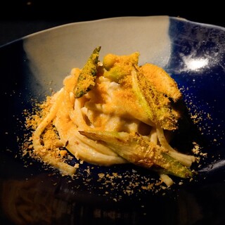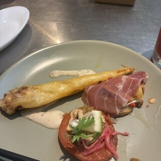 この日はニューオープンを見ていたらRODEOの新店、ポテチ&牛肉&パスタがフラッシュバックして発作が発動したので初訪問しました。日比谷線恵比寿駅の中目黒方の出口から歩いて2分、JRから5分のビル6階(マンションっぽい建物の二階からエレベータ) 事前に食べログの予約システムから予約しました お店に入るとRODEOらしいスタイリッシュな雰囲気、厨房を見たら中目黒のシェフと目が合いました。(&二度見)どうやら、中目黒->恵比寿->渋谷(->中目黒)でスタッフがローテートしたようです 2025/7/1オープンで、サービスコースのようです。いつまでなのか不明ですがCP良いコースです 多分、6980円コース 飲み物は、辛口ジンジャー(x2)とブラッドオレンジジュース。辛口ジンジャーはバランス良いからさで飲みやすく、オレンジジュースも甘すぎずオレンジの旨味が効いた味 熟成...続きを食べログで見る