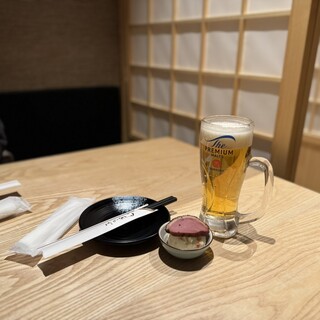 20251104 【神田】海鮮居酒屋 魚政 神田店 みらくの一人飲みしり~ず2025 Vol71 今日は久々の神田編♪ お店に行く前に、パチスロゲーセンの「神田センター」にちょい寄り道 閉店30分前の19時半頃だったので、遊ばなかったけど、 久々に副店長さんに会えた~(笑) さてさて、神田センターを後にして、今回お邪魔したのは、 「海鮮居酒屋 魚政 神田店」さん。 飯田橋に本店があり、神田店は25年10月27日とオープンしたてほやほや~ アクセスは、神田駅西口をでて右に曲がって徒歩2分くらいと駅チカ!! ビルの5階にあります エレベーターで上って、店内に入ると新店らしくピカピカ~ 壁と扉で仕切られた4名完全個室に着座~ オーダーは口頭注文で、フリーWi-Fiはなし。 オーダー内容とコメントはインラインにて。 スタートはザ プレミアム...続きを食べログで見る