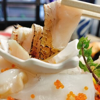新潟の食材をふんだんに味わえる海鮮居酒屋です。 ご当地でも有名なのどぐろは、甘みと旨味が非常に濃厚で、口に入れると柔らかな身が解けていきます。新潟を代表する魚の力強さを感じる一品です。 寒ブリのしゃぶしゃぶは、特に寒い冬には堪らない一品です。刺身でそのまま楽しみたくなるほど、新鮮な鰤を使っています。さっと出汁にくぐらせると、脂の甘みが華やかに広がり、後味はスッキリしています。鰤本来の旨味を存分に楽しめます。 刺身や寿司はどれも新鮮で、魚の透明感や脂の乗りから、産地の良さが伝わります。 新潟和牛のタタキは、見事な肉料理です。表面は香ばしく焼き上げられ、中心は肉の旨味が閉じ込められています。赤身の濃厚さを明確に感じらる事が出来、肉の質の高さが際立っています。 海老しんじょうは、ふんわりやわらかく、海老の香りが口いっぱいに広がります。優しい味わいで、食事の合間にも心...