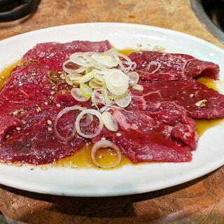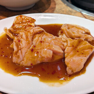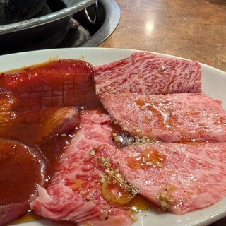年末最後の仲間内だけの忘年会で来ました。 なんともスゴイ店名、入って見るとどことなく懐かしい赤が基調のボックス席が中心の店内。 年末と言う事もありグループが目立つ中、予約無しで入店出来てラッキーでした。 さて、ビールで乾杯の後は肉です。 大人焼肉を美味しいく食べたいオッさんグループはなので、今日も肉の量は少なめ、酒の量は控えめで行きます! 先付、キムチにナムル発注の後、 「特選霜降りカルビ」「上ハラミ」「特選骨付きカルビ」「小袋」「ホルモン」「上ミノ」 お酒はビールとハイボールというベタな焼肉店での飲み物になる。 肉旨い。味付けも甘過ぎずコクがあり旨さを増す。火加減を気にしながらミディアムレア風に頂く。自分で焼くのがまた楽しい。 特選系は何処のお店も結構、肉薄で量も少なめだけど、ここのお店は肉厚で量も多くしているきがする。 美味しいしオーダー...続きを食べログで見る