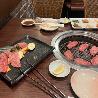 先日久しぶりに横浜へ。 スカイビル11階にある創業52年の老舗焼肉店『天山』で、特選肉尽くしコースを味わってきました! 内容はこちら♪ 特選肉尽くしコース 7800円(8580円税込) キムチとナムルの6点盛 上タン塩 本日のおすすめ部位 塩焼き2種類 本日おすすめの部位 タレ焼き3種類 サンチュ 御飯物 デザート 本日のおすすめ部位の 塩焼き2種類は、ささみとたてばら。 タレ焼き3種類は、三角ばら、中落ち、カイノミでした! どのお肉も厚切りで存在感抜群!! 肉の旨みがぎゅっと詰まっていて、噛めば噛むほど旨味が溢れ出す♪ さすが、長い歴史と、こだわりの味を守り抜いた厳選焼肉だけあって、上質なお肉ばかりでした。 個人的にはとっても柔らかくてびっくりな王道の上タン塩と、なかなか食べられない和牛のカイノミが食べられたのが...続きを食べログで見る